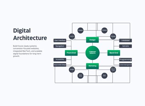 Strategic digital foundation development including conversion-optimized websites, integrated marketing technology, and future-ready solutions for sustainable business growth